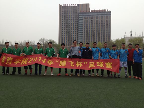 本网讯(文/图 体育学院学生会 孟祥华)为丰富学生课余生活,加强学生身体素质,提高学生团体合作能力,我院特为全院本科生及研究生举办了体育学院2014年“腾飞杯”足球赛,本次活动由我院团总支、学工办主办,学生会承办,于4月10日中午12点在东操场正式拉开帷幕。